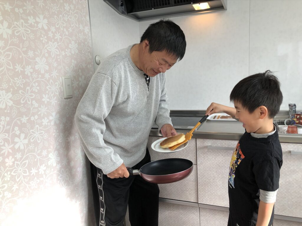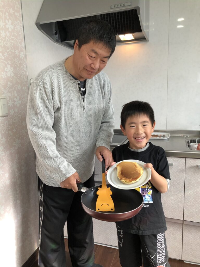 形が悪かったり、コゲコゲになったりしても息子の機嫌が良くなって一安心。