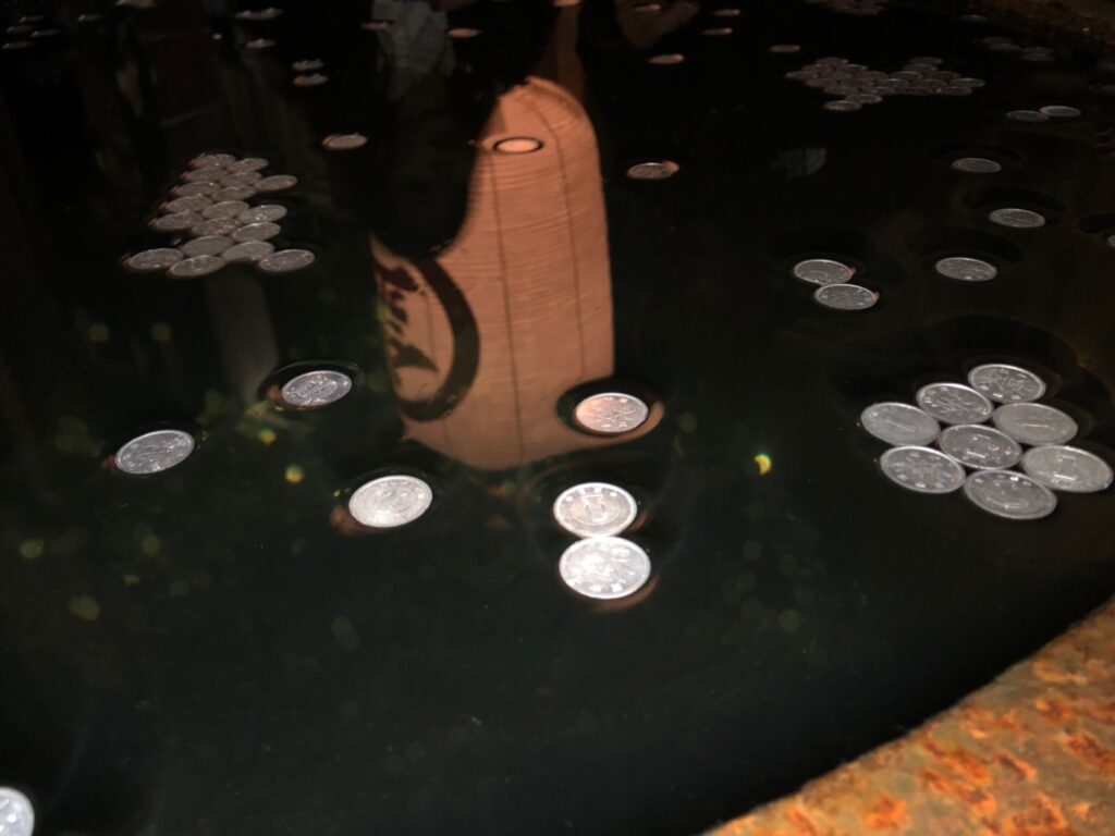 ちなみに途中にある一円玉が浮いたら縁起が良いと言われているものに