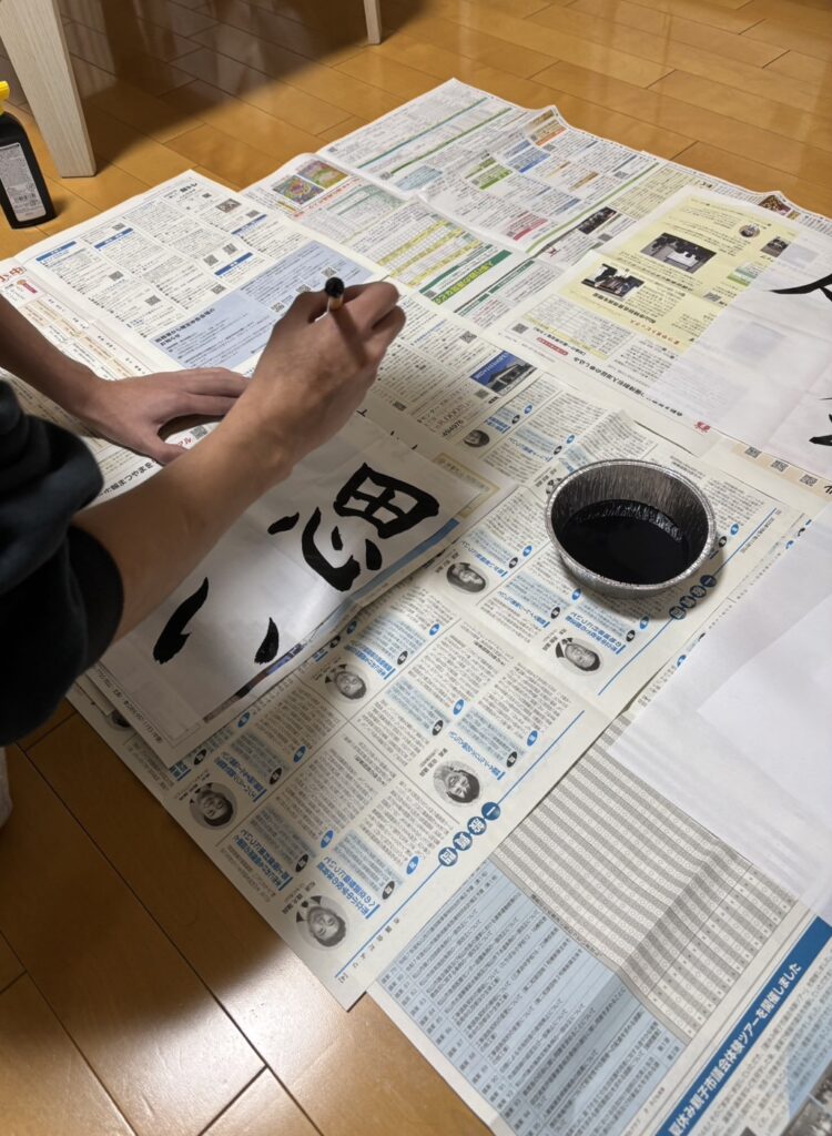 中学生ぶりの習字で手がプルプルしましたが、