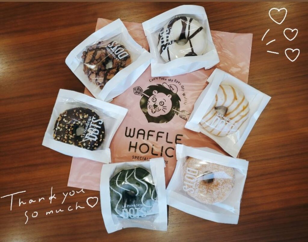 先日、近くのスーパーに LA PANADERIA DOTSという ドーナツ屋さんが出店されていたみたいで スタッフが買ってきてくれました🥹