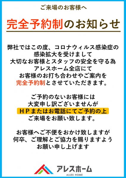 弊社では大切なお客様とスタッフの健康と安全確保の為、