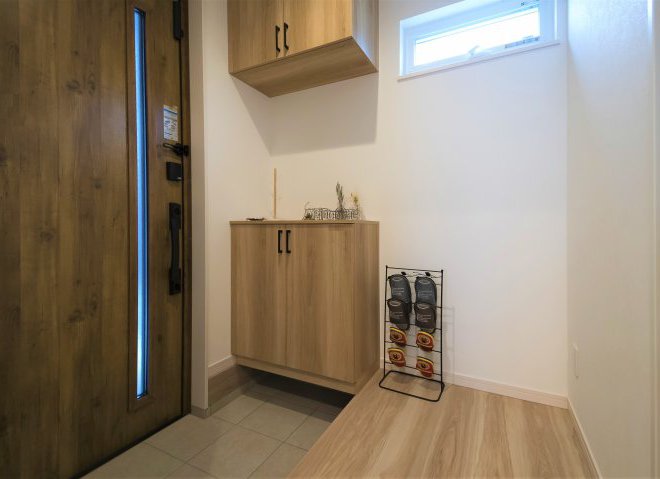 玄関は外壁で隠しているのでプライバシーも守ることができます。