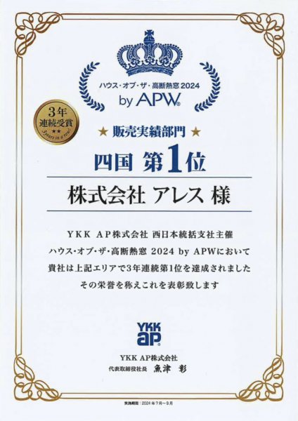 【3年連続四国1位!】YKK様から表彰していただきました!