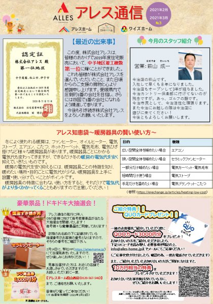 【アレス通信2月・3月号】当選者発表!